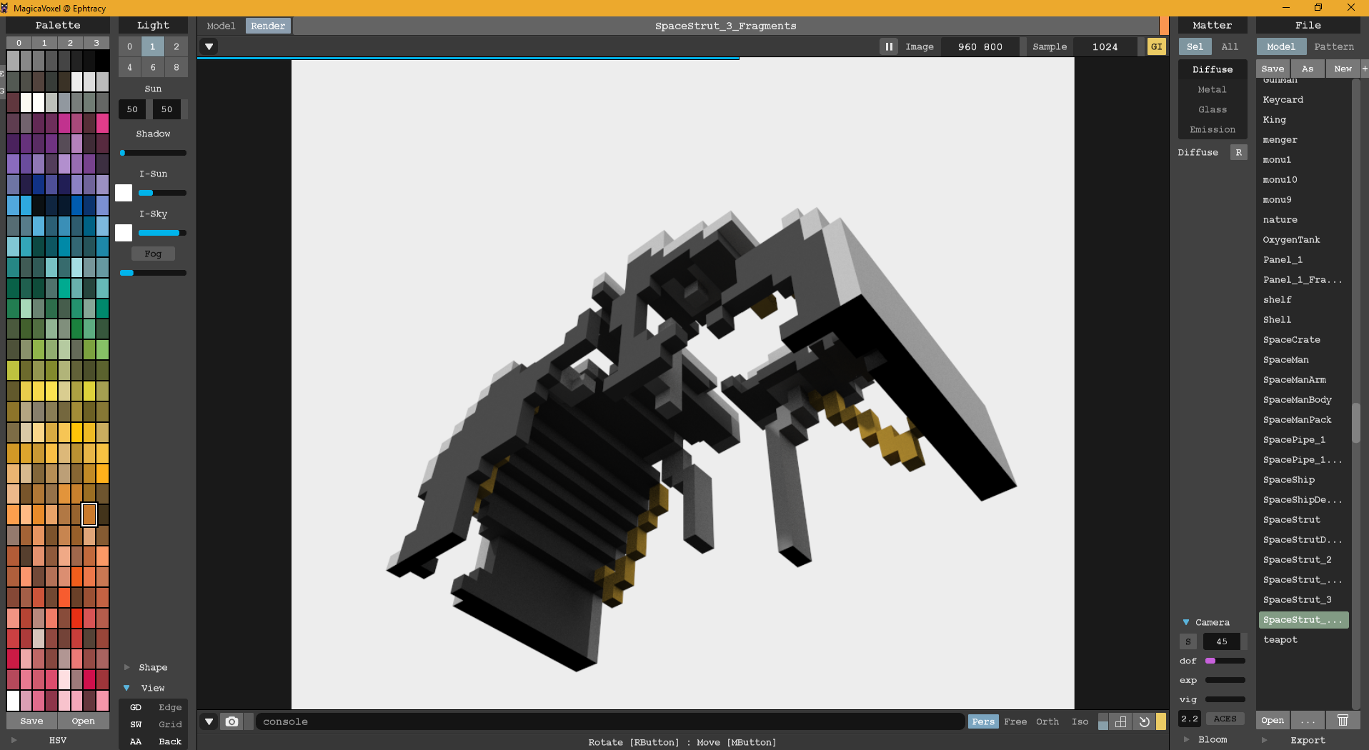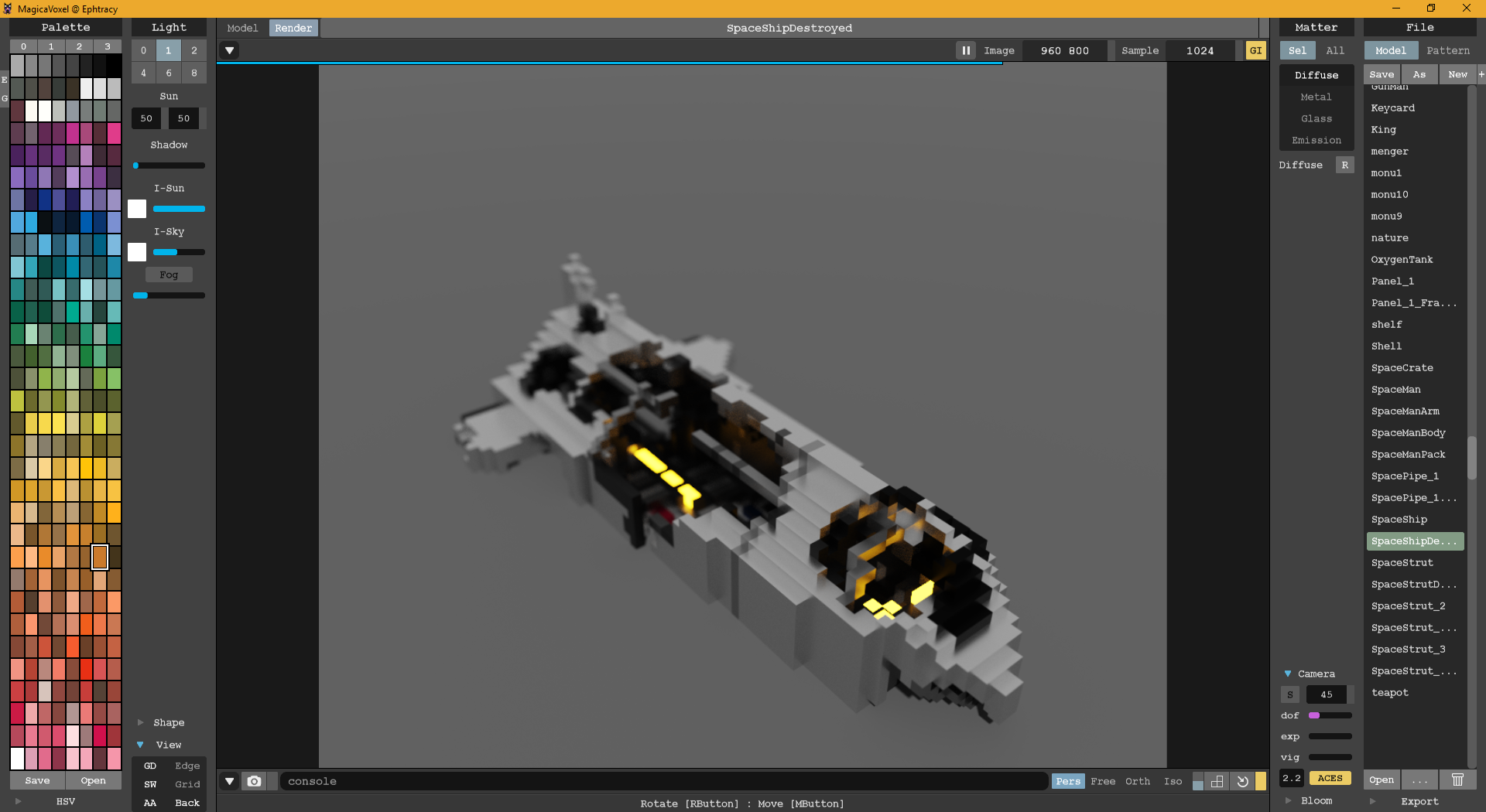 All of the 3D art was done in MagicaVoxel, an intuitive open source voxel based modelling package: